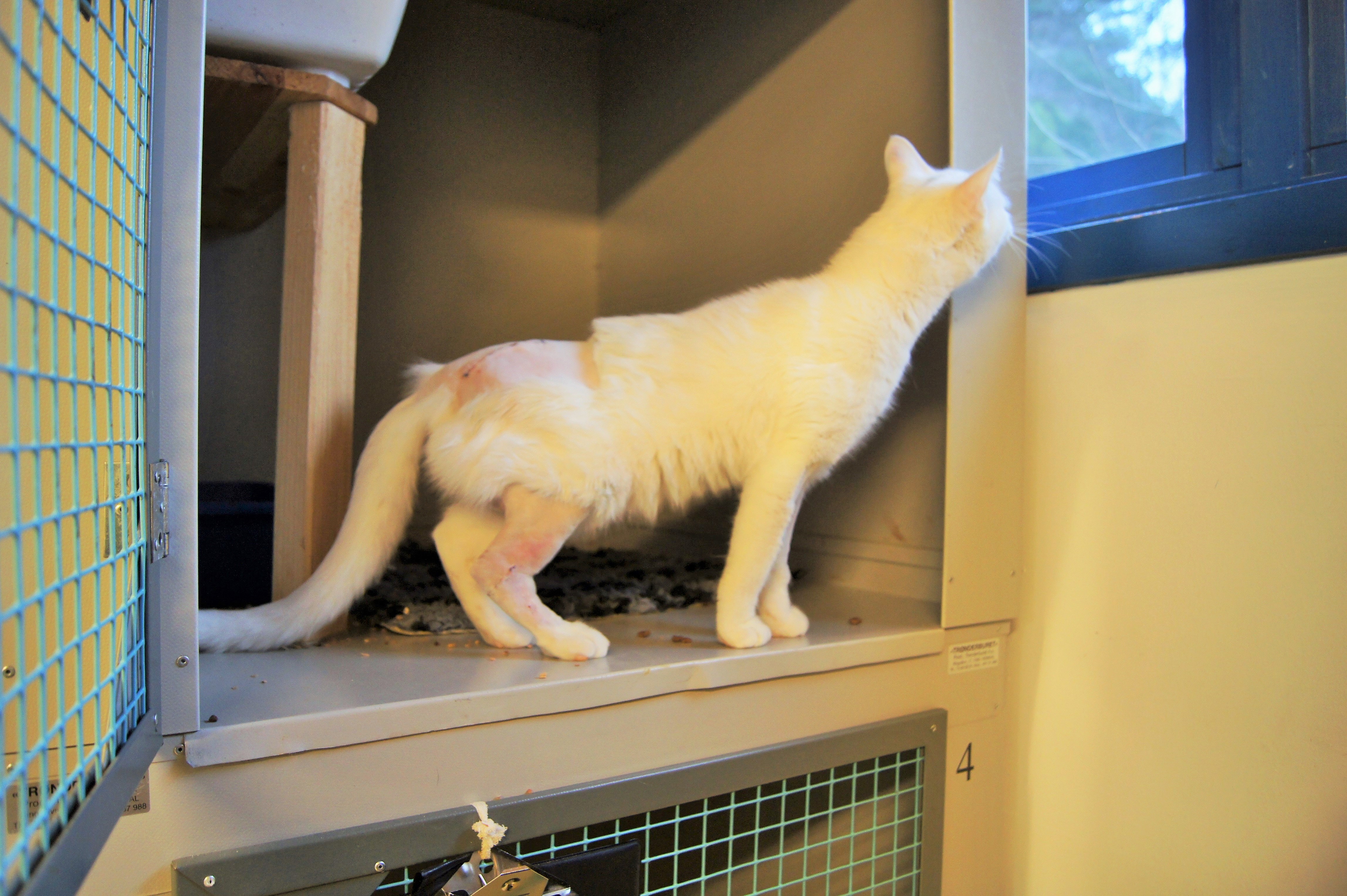 Melchior was homeless, and was hit by a car which broke his bones in four places. After a life-saving operation given at a discount by vet clinic Dyreklinikken Tertnes and funded by animal rescue donations collected by Dyrebeskyttelsen Norge avd. Bergen og Hordaland, he soon became fit and curious again.
